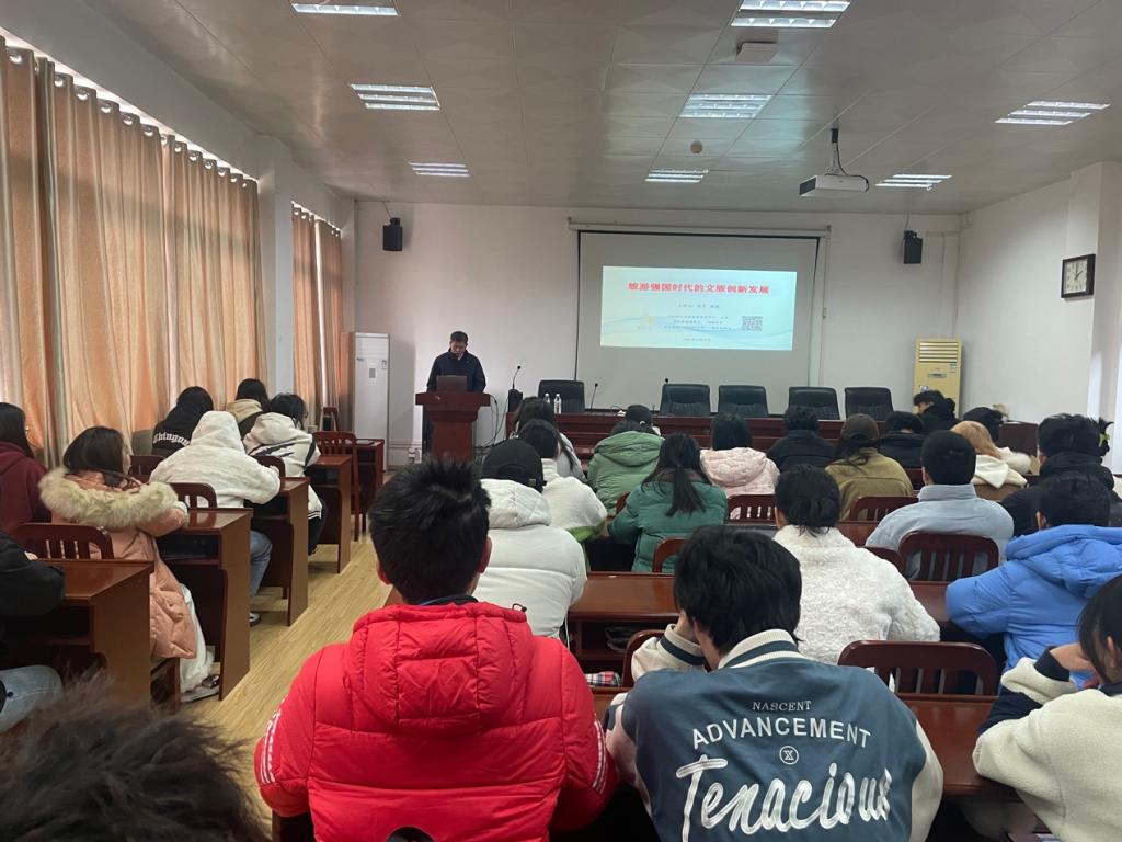 12月19日下午,武漢輕工大學(xué)旅游研究中心主任周霄教授應(yīng)邀在我校為旅游管理專業(yè)學(xué)生帶來了一場主題為《旅游強國時代的文旅創(chuàng)新發(fā)展》的專題講座。來自旅游管理專業(yè)的本科生和研究生共同參與了此次學(xué)術(shù)交流活動。