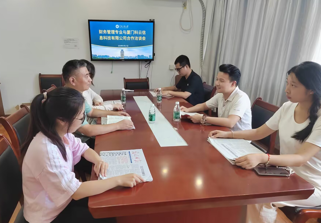 雙方洽談關于2025年“科云杯”全國大學生財會職業能力大賽參賽事宜。該賽事能激發學生學習財會知識的興趣、提高學生對財會知識的應用能力,培養和提升學生業財稅信息處理技能、智能化財務應用技能、綜合素養和團隊協作創新精神,展示財會專業課程教學改革與實踐創新成果。廈門科云信息科技有限公司擬為財務管理專業參賽學生提供模擬訓練賬號,提供在線問題答疑。雙方期待以良好的專業競賽成績助力一流專業建設和數智化財務管理人才的培養