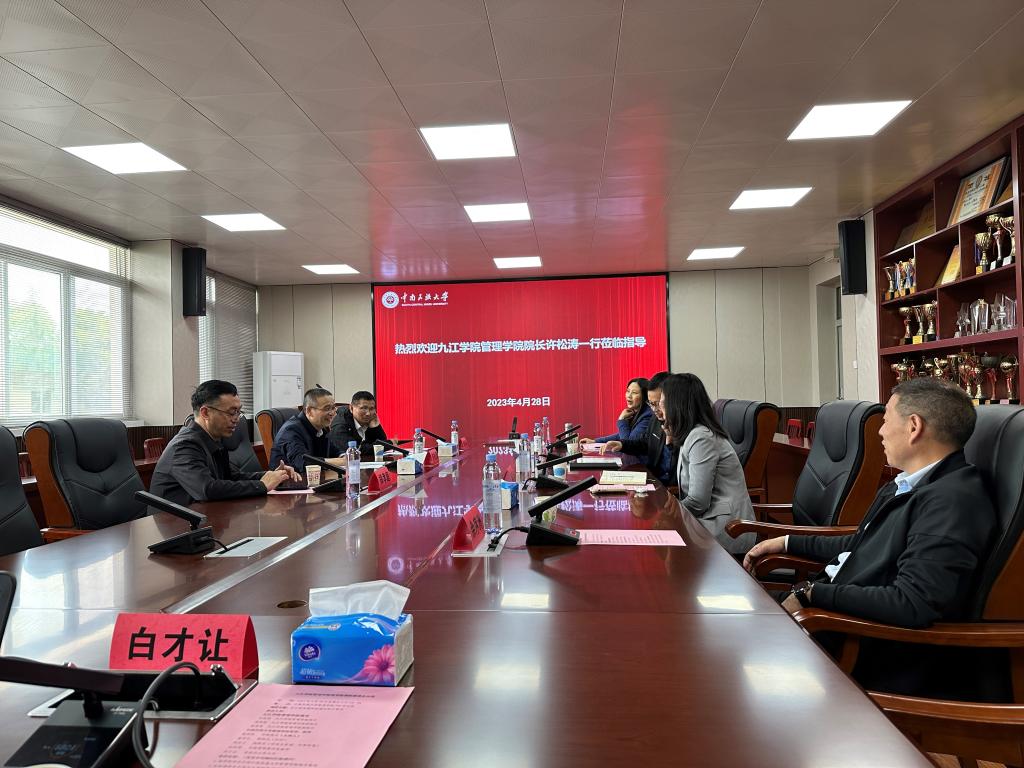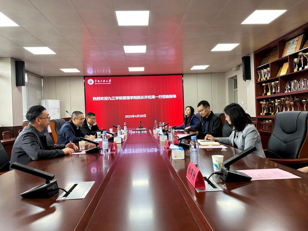 4月28日,九江學(xué)院管理學(xué)院許松濤院長(zhǎng)、鄭孝庭、蔡報(bào)純副院長(zhǎng)一行來(lái)我院調(diào)研,我院張勁松院長(zhǎng)、翟華云、周運(yùn)蘭副院長(zhǎng)、市場(chǎng)營(yíng)銷(xiāo)系余序洲老師參加了座談。