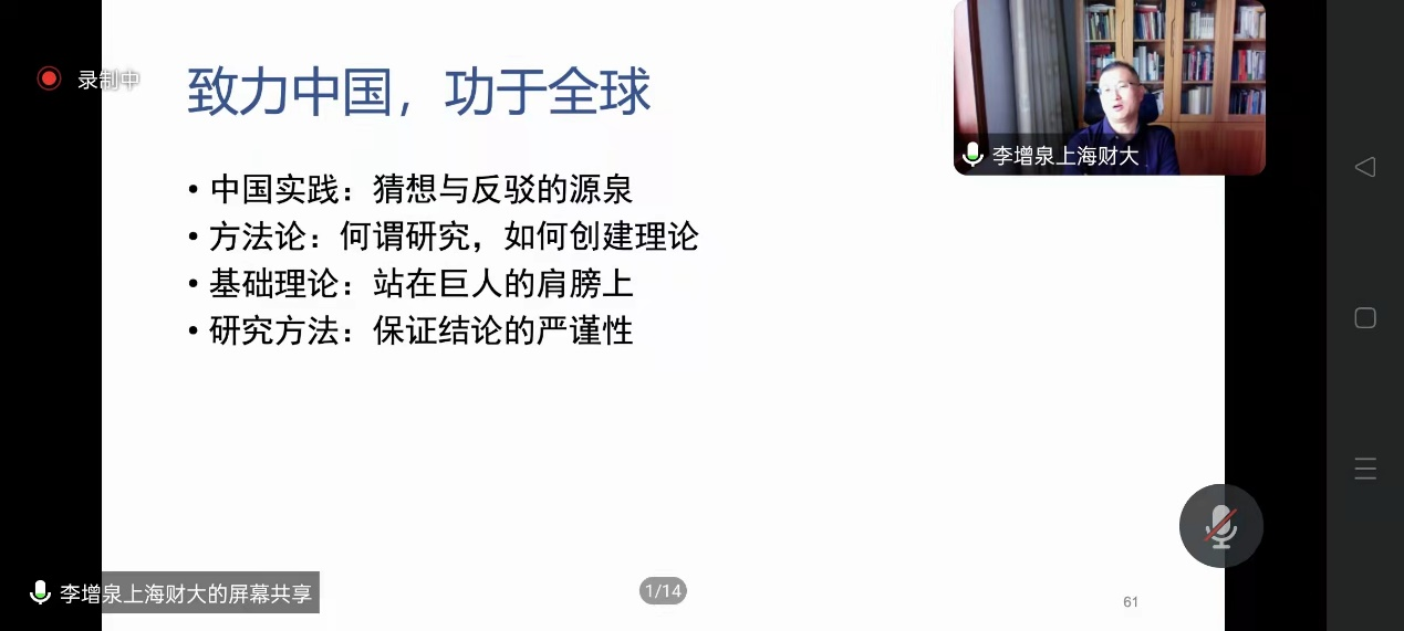 管理學(xué)院第二場(chǎng)“新文科–新融合–新管理”暑期系列講座在2024年7月30日上午線(xiàn)上開(kāi)講,上海財(cái)經(jīng)大學(xué)會(huì)計(jì)學(xué)院教授,博士生導(dǎo)師,黨委常委、副校長(zhǎng)李增泉教授受邀做主題為《中國(guó)會(huì)計(jì)研究的意義》的講座。此次講座由院長(zhǎng)翟華云教授主持,管理學(xué)院師生100余人參加會(huì)議。
