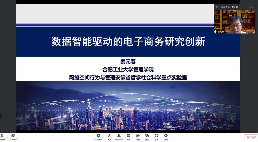 管理學(xué)院第四場(chǎng)“新文科–新融合–新管理”暑期系列講座在2024年8月7日上午線上開(kāi)講,合肥工業(yè)大學(xué)管理學(xué)院教授、博士生導(dǎo)師、副院長(zhǎng)姜元春教授受邀做主題為《數(shù)據(jù)智能驅(qū)動(dòng)的電子商務(wù)研究創(chuàng)新》的講座。此次講座由院長(zhǎng)翟華云教授主持,管理學(xué)院師生60余人參加會(huì)議。