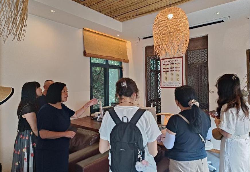 課題組首站來(lái)到了鐵廠荒社區(qū)道子坪田園項(xiàng)目綜合體,在鎮(zhèn)政府相關(guān)人員的帶領(lǐng)下,參觀了解項(xiàng)目整體規(guī)劃及建設(shè)情況,隨后實(shí)地走訪并深入調(diào)研該地?cái)?shù)家民宿,就民宿發(fā)展現(xiàn)狀及農(nóng)戶發(fā)展展望等相關(guān)問(wèn)題展開(kāi)交流,對(duì)“鐵廠荒模式”有了較為全面的理解,作出了總結(jié)與思考。