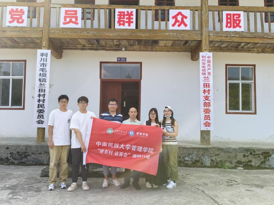 在拜訪當地企業后,調研隊伍赴利川紅茶產地毛壩鎮蘭田村少數民族特色村寨開展調研,與當地農戶展開了深入的交流,參觀茶園種植區域以及茶旅融合民宿。并且調研隊伍前往毛壩鎮蘭田村村民委員會采訪村支書肖書記,肖書記向調研隊伍熱情講述村內茶產業的發展歷程以及智慧農業未來發展規劃。