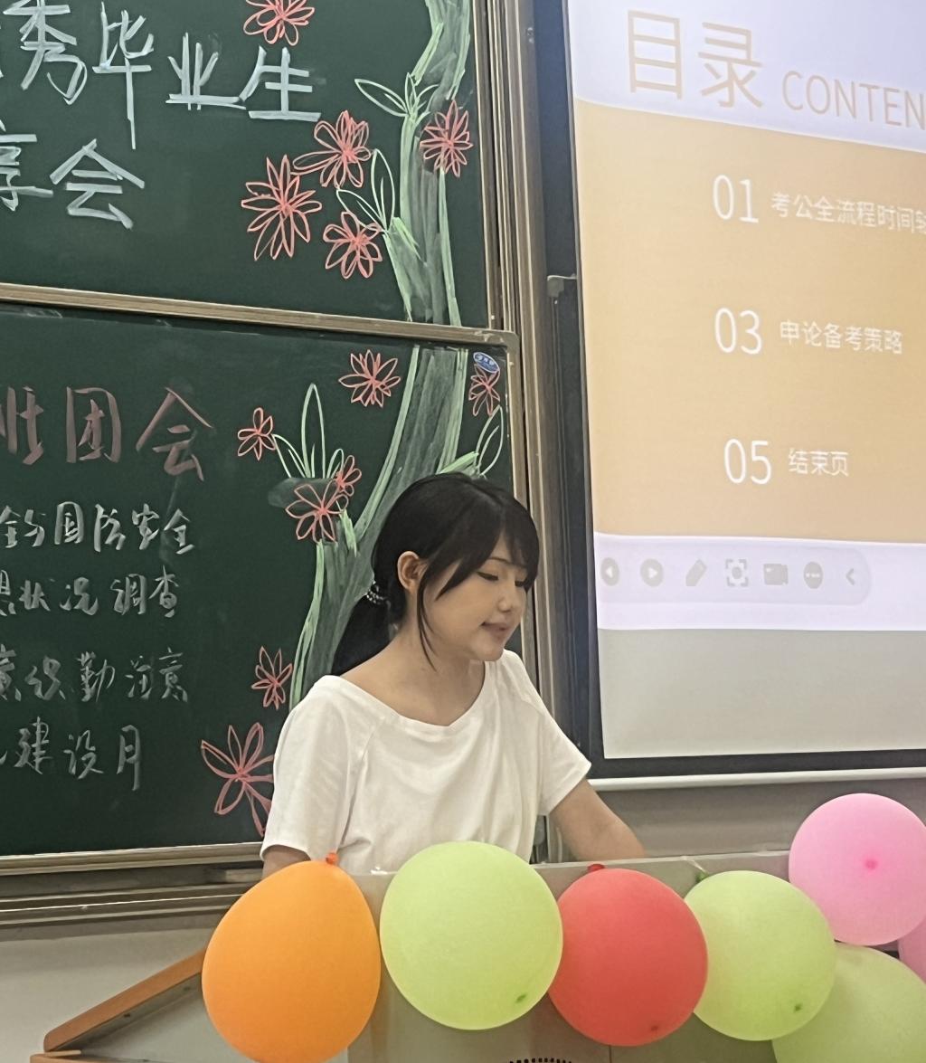 隨后,陸珺學(xué)姐以考研為主題,分享了她的成功上岸經(jīng)驗(yàn)。陸珺學(xué)姐成功考入南開(kāi)大學(xué),她的分享充滿了勵(lì)志色彩。她講述了自己從決定考研到最終錄取的心路歷程,分享了備考期間的時(shí)間管理、資料篩選、心態(tài)調(diào)整等方面的寶貴經(jīng)驗(yàn)。陸珺學(xué)姐鼓勵(lì)大家,只要目標(biāo)明確、方法得當(dāng),考研并不是遙不可及的夢(mèng)想。她用自己的親身經(jīng)歷告訴大家,只要勇敢追夢(mèng),終會(huì)迎來(lái)屬于自己的輝煌時(shí)刻。