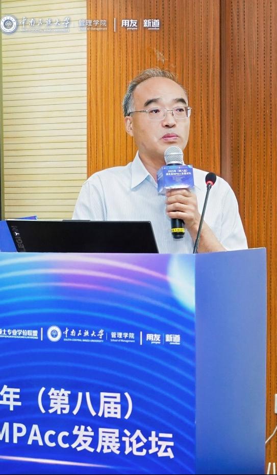 為貫徹落實國家“加快發展新質生產力”和“構建自主知識體系”的戰略要求,推動湖北省會計碩士專業學位教育高質量發展,2025年7月18日至20日,由全國會計專業學位研究生教育指導委員會指導,湖北省會計碩士專業學位聯盟主辦,中南民族大學管理學院、新道科技股份有限公司、武漢財通教育科技有限公司聯合承辦的“2025年(第八屆)湖北省MPAcc發展論壇”在中南民族大學隆重舉行。