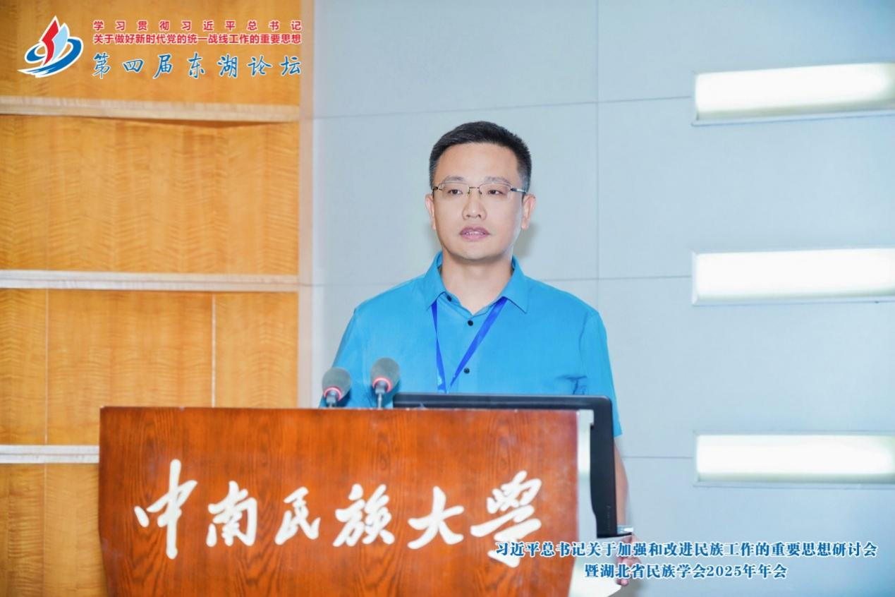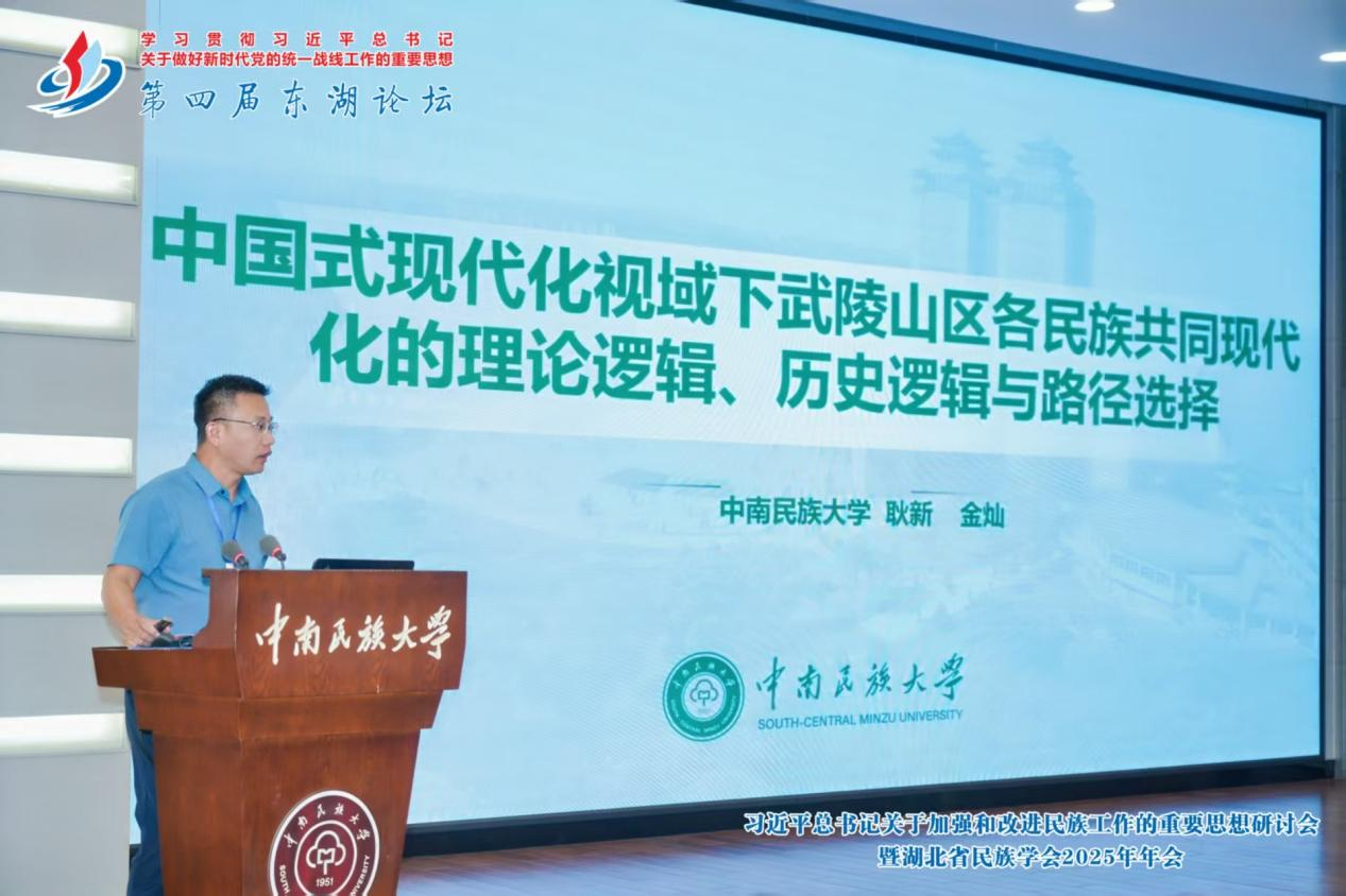 9月16日,第四屆東湖論壇·習近平總書記關于加強和改進民族工作的重要思想研討會暨湖北省民族學會2025年年會在我校學術交流中心舉行。本次論壇由湖北省民族宗教事務委員會主辦,湖北省民族學會和我校國家安全學院承辦。相關領域知名專家學者及地方干部代表齊聚一堂。與會專家和學者們梳理了從古至今具有中華民族共同體意識的典型案例,聚焦了“中華優秀傳統文化中的統戰智慧”等話題,提出了有益的建設性意見。我院企業管理系教師耿新受邀參會,并就論文《中國式現代化視域下武陵山區各民族共同現代化的理論邏輯、歷史邏輯與路徑選擇》作研討交流。