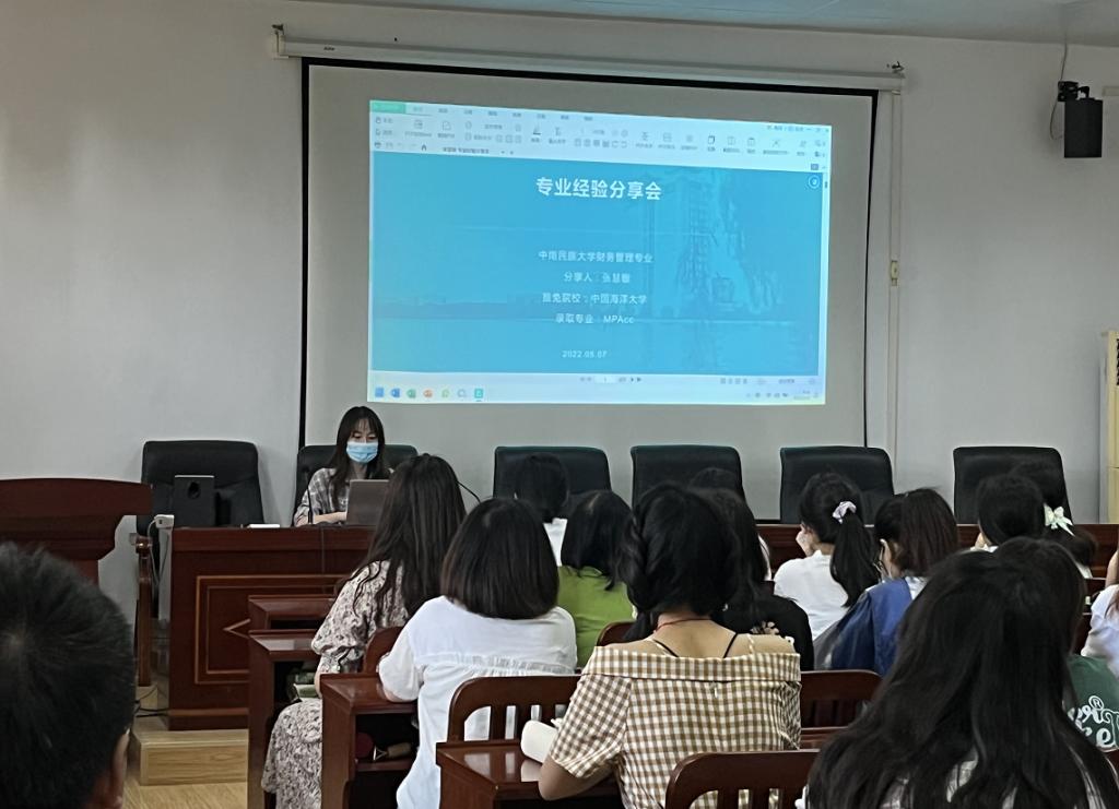 會議伊始,蘇亞民老師對財務管理系往年考研錄取情況以及今后考研發展趨勢進行了詳細的介紹,指出考研形勢日益嚴峻,鼓勵大家要認真聆聽經驗,積極復習備考。隨后,保研到中國海洋大學的張慧敏同學對自己的保研經歷進行了詳細的介紹,建議大家在保持高績點的同時積極參加學科競賽并嘗試加入導師課題組進行科研學習,在夏令營時期要海投簡歷為自己爭取更多的機會??忌虾洗髮W研究生的王樂霏同學介紹了會計專碩的學習內容,重點介紹了報考少數民族骨干計劃的條件。考上云南財經大學研究生的楊展鈳同學介紹了經濟類聯考的考試內容以及在調劑過程中遇到的困難,他認為調劑工作不到最后一刻千萬不能放棄,同時感謝專業老師對自己調劑的引導和幫助。考上本校研究生的張麗婷、余長軒2位同學介紹了會計學碩備考過程中各科的學習方法,同時張麗婷強調了盡早開始考研學習的必要性以及保持良好心態的重要性,而余長軒同學認為考研是一個持久戰,只要堅持下去就能取得滿意的成績??忌媳拘Q芯可睦钯煌瑢W重點向大家介紹了自己的備考經歷以及考研過程中出現的問題,強調在考研過程中切忌精神內耗,不要半途而廢。張梅學姐向大家分享了自己公務員考試過程中的時間安排以及使用過的一些學習資料,強調在行測考試中要有的放失,行測考試時間少而題量大,要爭取在有限的考試時間中獲得理想的分數。徐嘉怡同學重點介紹了自己的面試經歷和面試技巧,她強調簡歷填寫一定要認真,不要出錯,要培養面試的隨機應變能力。
