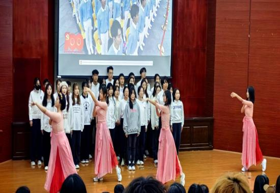 閉幕式在莊嚴肅穆的國歌聲中拉開序幕。4個團支部依次匯報展示學習情況,并依次呈現了歌舞表演《如愿》、話劇表演《青春中國》、朗誦表演《祖國不會忘記》、歌曲表演《有我》。4個各具特色的節目帶領在座觀眾回顧共青團的光輝歷史,弘揚革命精神,展現出學員們的青春風貌。