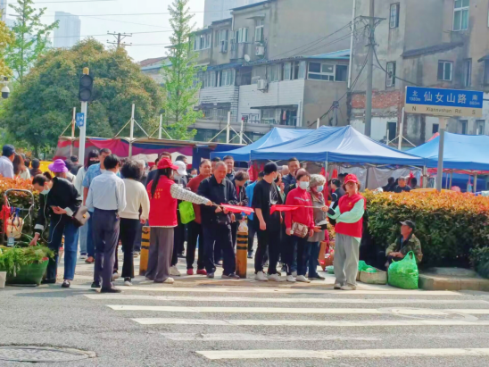 志愿者于清晨6點出發,第一時間抵達扁擔山公墓與相關負責同志一同為英烈獻花。緊接著,在街道負責人的引導下開展崗前培訓,領取志愿馬甲、指引牌等物資,按照所分配崗位主要負責道路交通指引、維持祭掃秩序、便民咨詢服務、后勤服務等工作。面對前來扁擔山公墓進行清明祭掃的市民朋友,志愿者們始終熱情飽滿、耐心細致地回答市民的提問,積極為市民解決問題。