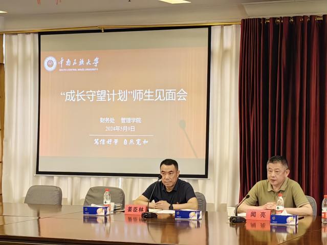 財(cái)務(wù)處處長(zhǎng)姜臣林表示,財(cái)務(wù)處作為管理學(xué)院學(xué)生“成長(zhǎng)守望計(jì)劃”的對(duì)接部門,立足部門基礎(chǔ)工作為同學(xué)們提供相關(guān)指導(dǎo),詳細(xì)介紹了學(xué)費(fèi)、醫(yī)療費(fèi)等的辦理流程以及勤工助學(xué)崗位的供給等,希望和同學(xué)們建立“肯信任、敢依賴、有信心”的親密關(guān)系,為大家的成長(zhǎng)成才保駕護(hù)航。