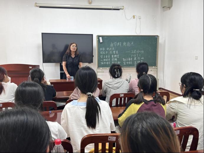 注會2301班班導師完紹芹在班會上 李丹供圖