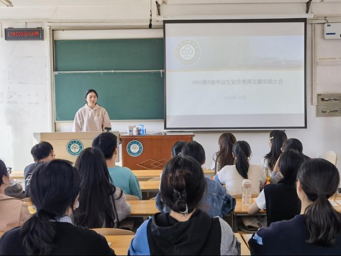 本次年級大會是2021級A部結合學生學習生活實際發展節點、為深化學生安全意識的學生工作常規活動,旨在做好畢業生備考就業行前安全教育,時刻意識到風險并將風險防范前置化,為本年級畢業生順利升學就業保駕護航。