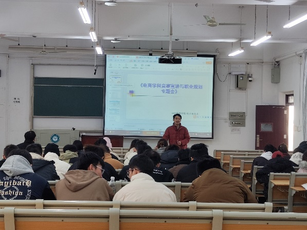 為貫徹學(xué)校全面育人理念,持續(xù)優(yōu)化專業(yè)教育培養(yǎng)模式,促進(jìn)電子商務(wù)專業(yè)學(xué)生的卓越發(fā)展。管理學(xué)院電子商務(wù)專業(yè)于12月20日下午在11棟210教室組織召開了“學(xué)科競賽宣講交流與商業(yè)計劃書撰寫輔導(dǎo)”專題會。電子商務(wù)系別黎主任以及2022級與2023級電商100多名同學(xué)參加會議,會議由別黎老師主持。