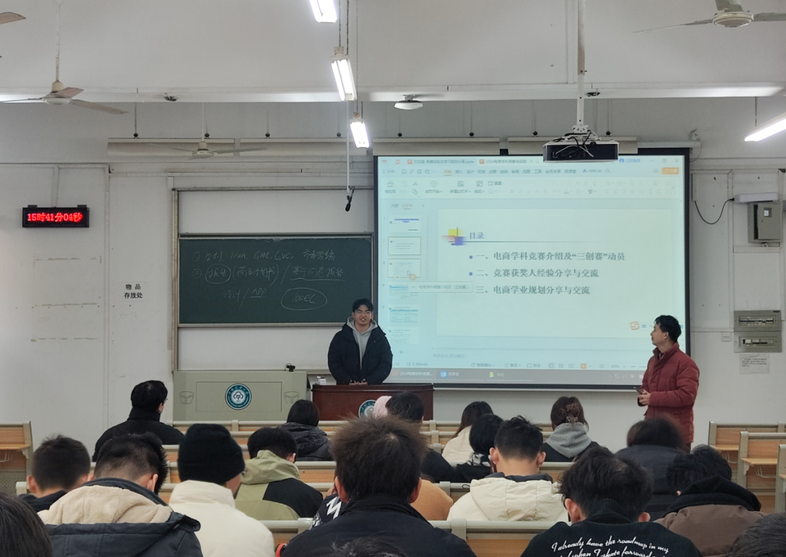 在電商學(xué)科競賽的介紹環(huán)節(jié)中,別黎老師介紹了電商學(xué)科競賽的主要類型,詳細(xì)闡述了各類比賽的精髓與要點(diǎn),并強(qiáng)調(diào)了將專業(yè)課程學(xué)習(xí)與學(xué)科競賽相結(jié)合的重要性。在環(huán)節(jié)尾聲,別黎老師對即將到來的2025年電子商務(wù)“三創(chuàng)”賽進(jìn)行了動員,鼓勵大家跨學(xué)科、跨年級組隊(duì),以賽促學(xué),淬煉理論與實(shí)踐的雙翼。