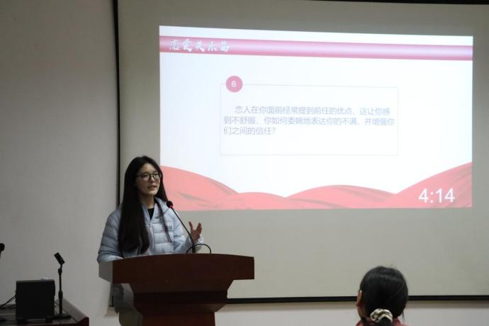 90余名選手經(jīng)過初賽的深度閱讀、提交閱讀讀后感、學(xué)院初篩等環(huán)節(jié),最終13位選手脫穎而出進(jìn)入復(fù)賽。復(fù)賽重磅推出“五分鐘深度剖析制”,賽程設(shè)置獨具匠心:前半程聚焦參賽者限時分享閱讀感悟,后半程開啟情景模擬答辯環(huán)節(jié),精準(zhǔn)聚焦人際關(guān)系、戀愛交往、親子溝通、宿舍相處四大成長課題。選手們直面學(xué)子高頻遭遇的成長難題,在智慧交鋒中展現(xiàn)知識儲備與臨場應(yīng)變能力。創(chuàng)新賽制引爆全場,既有深度思想碰撞的學(xué)術(shù)氛圍,又不失智慧火花迸發(fā)的競技激情,將賽事推向高潮迭起的精彩境界。