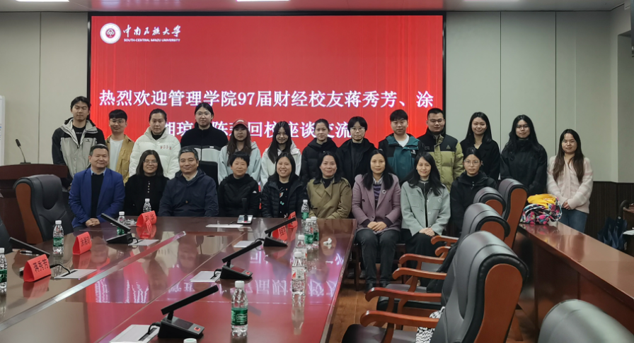 2025年3月28日上午,我院1993級財經系會計專業優秀校友蔣秀芳、涂湘瓊、曾榮、劉放、張鴻、彭燕玲等重返校園,在5號教學樓206會議室內,師生共聚座談。管理學院黨委副書記李明亮、副院長周運蘭,校友陳莉(數統學院組織員、我院財經93級),會計系主任劉華、財務管理系主任蘇亞民,教師完紹芹,以及會計學碩專碩研究生、本科學生代表與北方民族大學交流生共同參與座談。