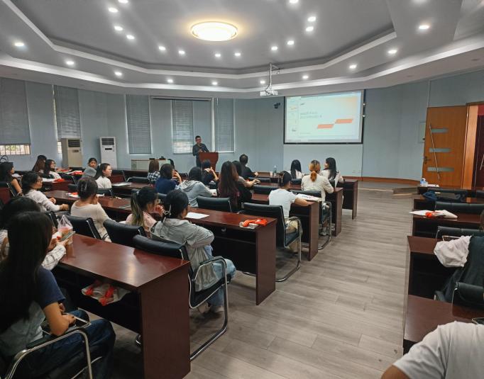 互動環(huán)節(jié)中,同學(xué)們圍繞實習(xí)要求、崗位差異、證書備考、語言要求等踴躍提問,林靖欽與兩位校友一一解答,并建議學(xué)生盡早明確職業(yè)方向,通過實踐積累經(jīng)驗。