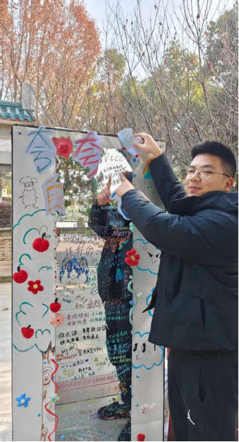 活動現場的“夸夸我”“情緒盲盒”“玩個毛線”等游戲人氣高漲,參與者寫下煩惱投入“情緒盲盒”,換取“鼓勵盲盒”的抽取機會,在輕松氛圍中學會正視情緒和煩惱;“玩個毛線” 用毛線串起被忽略的日常小事,引導大家關注生活中的小確幸;”夸夸我”的墻上留下了同學們美好祝愿。路過的師生紛紛駐足觀看,不時還拿出手機拍照記錄,留下了印象深刻的美好回憶。