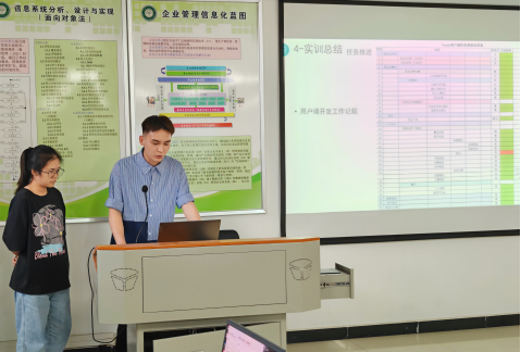 2024年6月19日下午,管理學院信息管理與信息系統專業于16棟教學樓103實驗室成功舉行了2021級信管專業實訓成果匯報會,本次匯報會主題為管理學院2021級信息管理專業“專業綜合實訓”的項目發布、成果匯報、評優暨結業典禮。匯報會由陳漢彬、藍天同學擔任主持人,全體2021級信管專業同學參加,參會的領導和老師有管理學院信管系楊單、楊健、杜文華、張晴老師以及實訓合作企業武漢凡諾芯科技有限公司指導教師歐陽旻、黃民智、林焰鋒老師等。