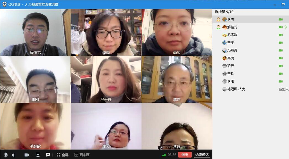 藏歷新年前夕,習(xí)近平總書(shū)記給在北京大學(xué)首鋼醫(yī)院實(shí)習(xí)的西藏大學(xué)醫(yī)學(xué)院17名臨床醫(yī)學(xué)專業(yè)本科生的回信,近期引發(fā)廣大師生的熱議。人力資源管理教研室于2020年3月2日20:00-20:45,組織開(kāi)展了“習(xí)近平總書(shū)記給在首鋼醫(yī)院實(shí)習(xí)的西藏大學(xué)醫(yī)學(xué)院學(xué)生重要回信精神”在線集體視頻學(xué)習(xí)會(huì)議,教研室共10名專任教師,除1名在外訪學(xué)教師外均參加了此次視頻學(xué)習(xí)會(huì)議(如圖1)。
