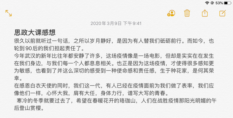 “思政課”這幾個(gè)字聽起來或許有些無味,但在實(shí)際收聽的過程中并不是這樣,授課老師是名校教授,每每講到動(dòng)人之處都讓人想要落淚。這是一次在特殊時(shí)期很有意義的課。