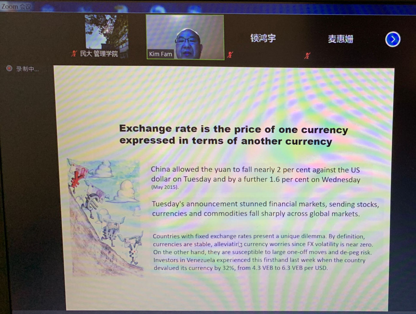 2020年10月10日,Kim-Shyan Fam教授開始了第一周的網上授課,上午 9:00-11:00,講授主要內容為Introduction to International Marketing,下午2:00-4:00,講授主要內容為Economic, Financial, Political and Legal Environment。管理學院副院長周運蘭教授,電子商務系陳傳紅副教授、旅游系馬曉京教授參加了第一次授課啟動儀式,選課學生包括管理學院本科生、研究生以及管理學院國際學生。