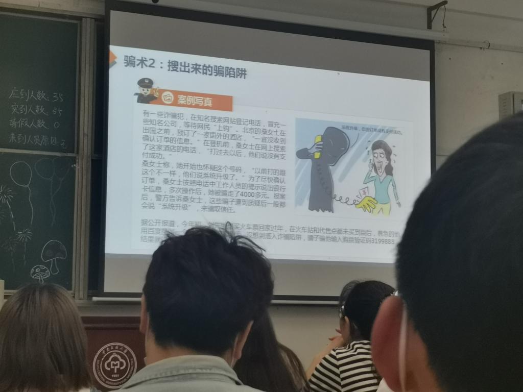 會議開始,主持人向同學們強調了電信詐騙防范的重要性,電信詐騙與我們的生活息息相關。在校園生活中,大學生是電信詐騙的高發人群。騙子冒充朋友跟事主借錢,有短信謊稱娛樂節目節目中獎,讓事主轉賬繳稅,騙子冒充外地的公檢法讓事主轉賬等等……這些都是電信詐騙常見的手段。因此,面對電信詐騙,大學生要學會提高安全防范意識,學會自我保護,要樹立正確消費觀念和理財觀。介紹完相關的詐騙案例后,主持人通過小測試,來分析大家的心理健康狀況,進一步提出大學生心理健康的重要性。對于大學生,心理健康教育也十分的重要。只有擁有健康的心理素質,才能更好的擁抱生活。