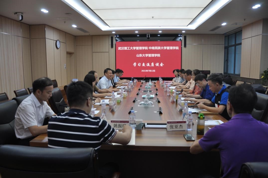 翟華云副院長與李超鋒副院長還帶領會計系教師赴山東大學,與山東大學管理學院副院長路軍偉教授、會計學一流專業建設負責人潘愛玲教授、會計系主任李彬教授以及山東大學會計學專業建設團隊進行了調研與座談。山東大學管理學院會計系師資力量雄厚,是首批會計學國家一流專業建設點。李彬教授和潘愛玲教授分別深入介紹了山東大學會計系國家一流專業建設情況,分別從培養方案、課程改革、學生培養等方面進行了詳細深入的介紹,并依據我校會計學專業的特色提出了中肯的專業建設意見。繼而雙方深入就智能會計學發展與高層次會計人才培養等方面進行了具體的交流。