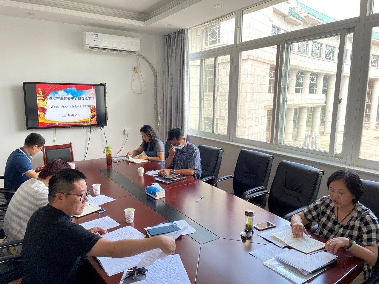 9月30日上午,管理學院召開黨委理論學習中心組本學期第2次專題學習會議,集體學習習近平總書記在中央人才工作會議上的重要講話原文,學院黨委理論學習中心組成員參加學習。會議由管理學院黨委書記鄒反修主持。