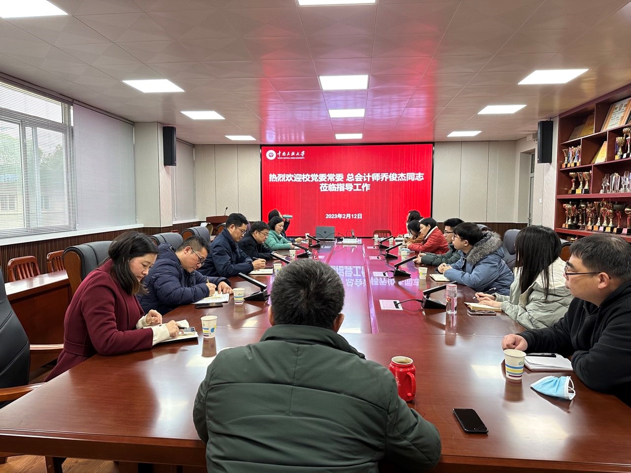 (圖片:白才讓)2023年2月12日上午,學校黨委常委、總會計師喬俊杰同志到管理學院檢查指導開學相關工作,進一步傳達潘岳同志在委屬事業單位改革發展部署會上的講話精神。管理學院全體黨政領導班子成員、輔導員參會,會議由學院黨委書記鄒反修主持。