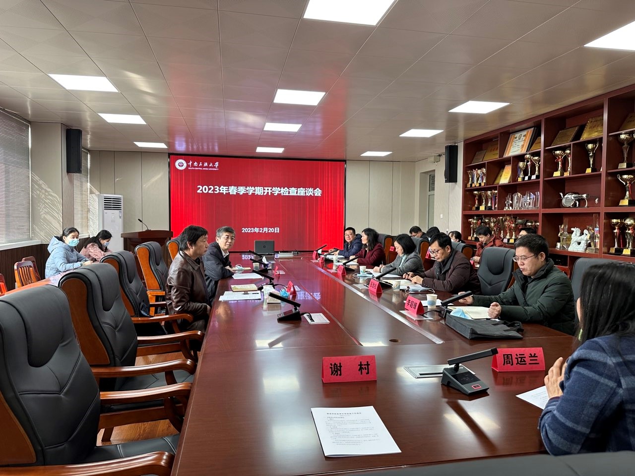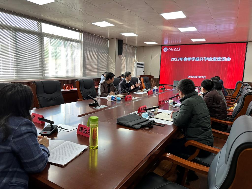 2023年2月20日上午,校黨委書記邊境帶領教務處長黃迎新一行到管理學院進行開學檢查。學院全體黨政領導班子成員、教研室主任、教工黨支部書記、學工辦主任和辦公室主任參會,會議由學院黨委書記鄒反修主持。