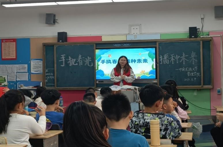 為更好地傳承志愿者精神,提高小朋友的環保與安全意識,3月9日下午,中南民族大學管理學院青年志愿者協會聯合光谷實驗小學共同為三年級和四年級的小朋友舉辦“手執春光,播種未來”和“窗外春暖花兒笑,切莫拋物把人傷”的志愿主題宣講活動。其中,共有管理學院五十多名志愿者參與此次活動。