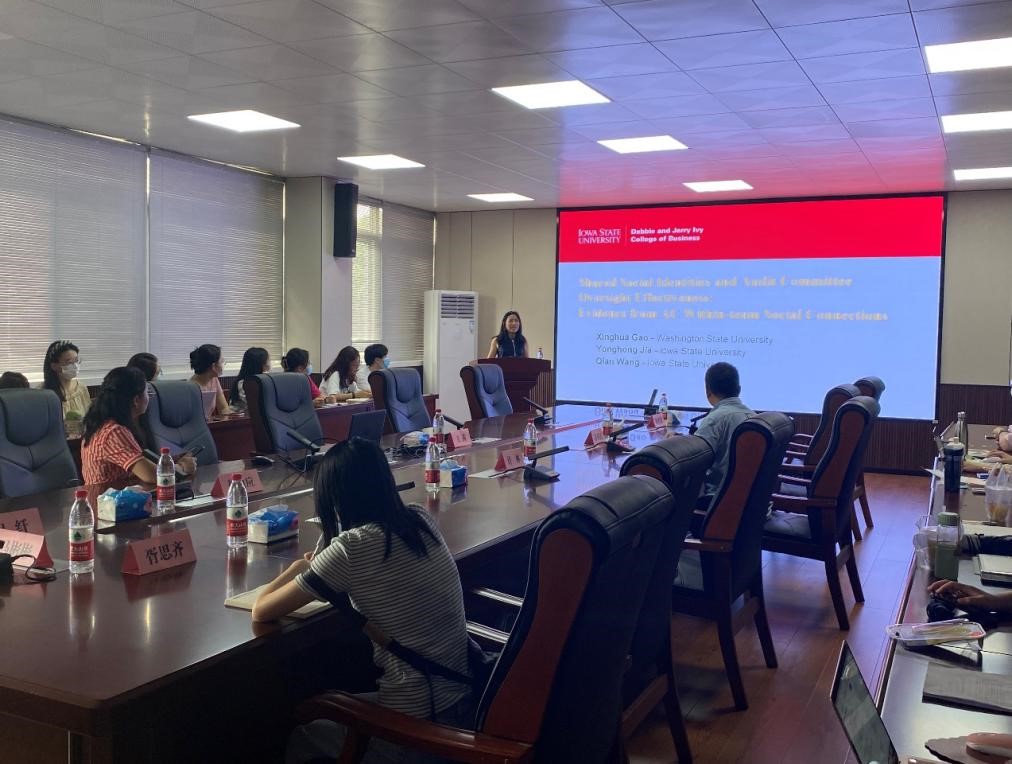 2023年5月29日上午10點,應中南民族大學管理學院邀請,美國艾奧瓦州立大學會計學王茜副教授為管理學院碩士研究生開展了主題為:《Audit Committee Within-Team Social Connections and Oversight Effectiveness(審計委員會內部團隊的社會關系和監督效果)》的學術講座。本次講座由我院財務管理專業負責人蘇亞民教授主持,胡曲應副教授、胥思齊老師、我院會計學碩與MPAcc會計專碩研究生參加。