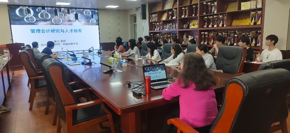2023年10月29日下午2點30分,應中南民族大學管理學院邀請,上海海事大學博士生導師張川教授為老師和研究生們開展了主題為《管理會計研究與人才培養》的講座,主講人張川教授是中國會計學會高等工科院校分會會長,同時也是上海電力大學和上海電機學院的總會計師,張川教授團隊成員上海大學副教授婁祝坤和上海海事大學博士生羅文波參加會議。管理學院院長翟華云教授主持,周運蘭副院長、劉華、劉亞偉、高娟、方蕓和朱杰等老師與會計專業研究生參加。