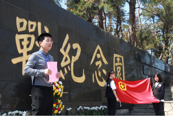 在武漢抗戰紀念園中,全體師生列隊齊唱國歌后靜默肅立,共同為英烈們默哀一分鐘并敬獻鮮花,表達對先烈們無盡的追思與崇高的敬意。默哀過后學院團委指導老師謝鵬致辭,他強調青年學子要深入踐行并傳承先輩們所留傳下來的革命精神,用紅色文化鑄牢中華民族共同體意識,將中華民族共同體意識外化于行,以實際行動促進民族團結進步。隨后,師生一同面對團旗重溫入團誓詞,重申了不忘初心、牢記使命,為黨和人民事業不懈奮斗的決心。