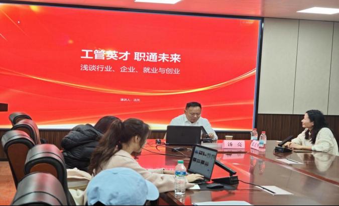 系列活動的收官之場于12月7日舉辦,聚雅科技總經(jīng)理湯亮先生應(yīng)邀分享。他通過分析就業(yè)市場與薪酬趨勢,系統(tǒng)比較了國企、民企、外企的不同特點(diǎn),建議同學(xué)們開闊視野,關(guān)注產(chǎn)業(yè)鏈優(yōu)質(zhì)環(huán)節(jié)。在就業(yè)與創(chuàng)業(yè)方面,湯亮強(qiáng)調(diào)扎實(shí)的專業(yè)知識、積極的職業(yè)心態(tài)與審慎的創(chuàng)業(yè)準(zhǔn)備,為同學(xué)們的長期發(fā)展規(guī)劃提供了理性而富有建設(shè)性的建議。