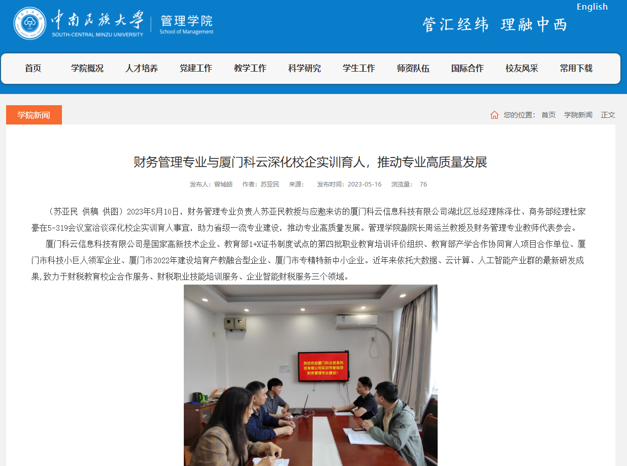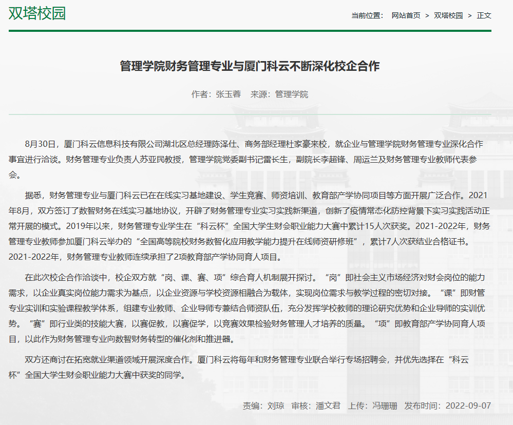 2. 財務管理專業與廈門科云深化校企實訓育人,推動專業高質量發展