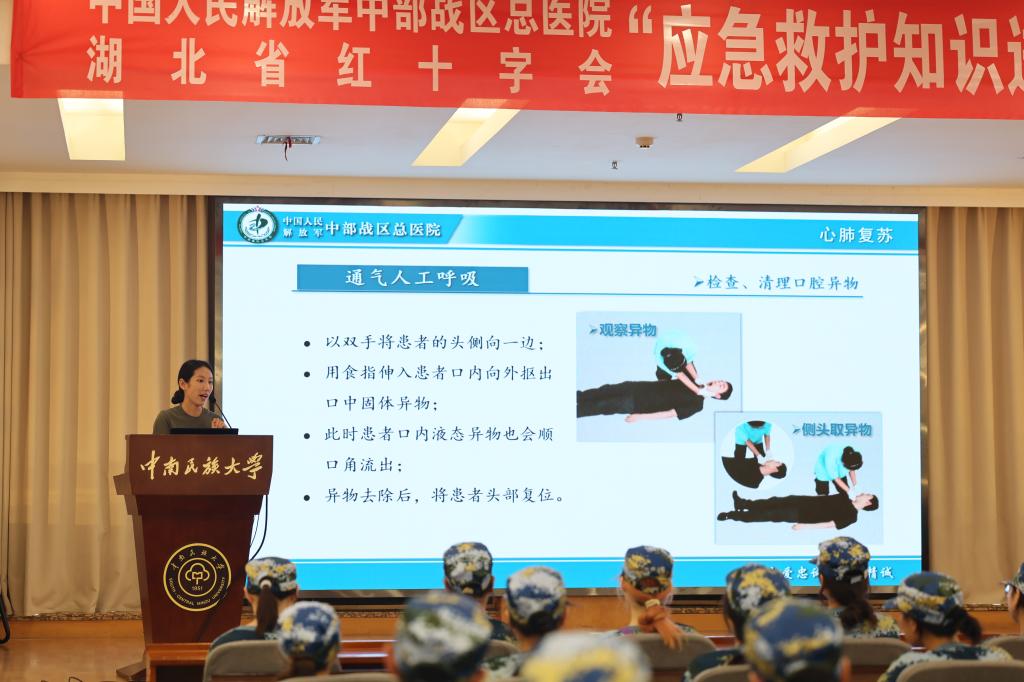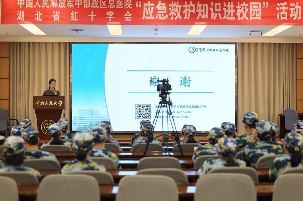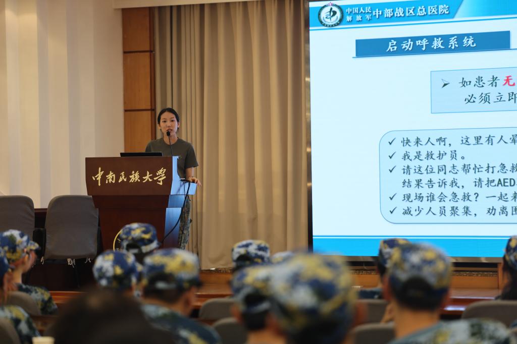 為做好2024級(jí)新生軍訓(xùn)工作,落實(shí)學(xué)校《2024級(jí)新生軍事訓(xùn)練工作手冊(cè)》醫(yī)療救護(hù)、安全教育相關(guān)要求,中南民族大學(xué)黨委學(xué)生工作部于9月11日上午在學(xué)術(shù)交流中心潤(rùn)良報(bào)告廳組織舉辦“應(yīng)急救護(hù)知識(shí)進(jìn)校園”活動(dòng),通過(guò)應(yīng)急救護(hù)知識(shí)講座的形式面向參加軍訓(xùn)的新生普及急救知識(shí)。本場(chǎng)講座由中部戰(zhàn)區(qū)總醫(yī)院專家王依進(jìn)行主講,武漢市紅十字會(huì)提供技術(shù)支持,學(xué)校6200余名本預(yù)科新生通過(guò)線上線下兩種方式參與本次培訓(xùn)。