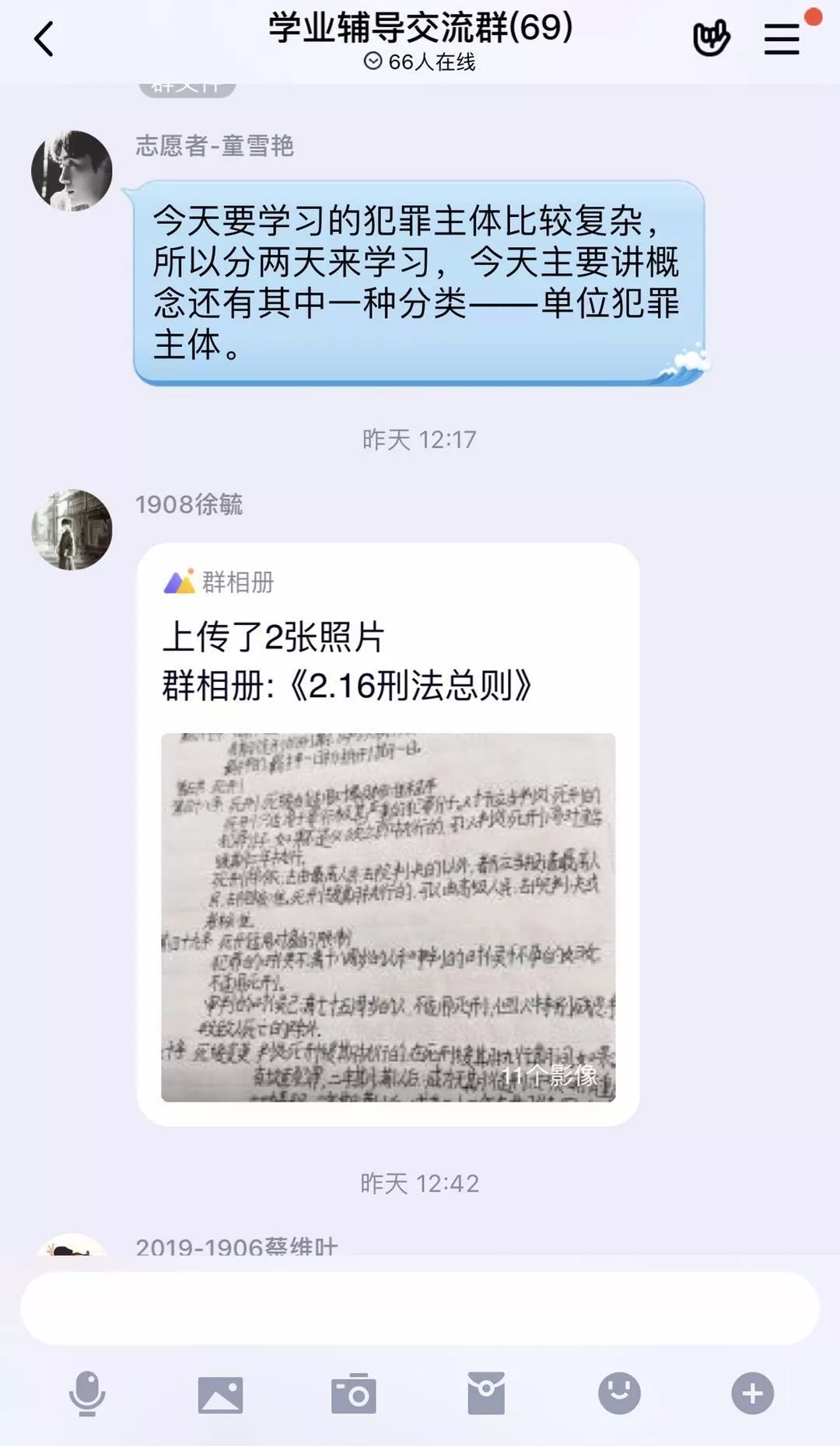 在疫情防控期間開展學業指導、四六級指導、研考法考公考指導以及宣傳服務活動......這是法學院法翼支教團“線上幫扶志愿服務隊”開展的工作。四支指導小組首期14名志愿者,通過考試經驗和備考資源分享、考試相關問題答疑、備考打卡監督、學長學姐備考經驗分享等方式,幫助同學們共同學習,共同成長。“除了志愿服務,還要兼顧自己的學習,雖然辛苦,但在這個過程中我們也收獲了許多成長與感動。志愿的本質是一顆回饋、服務社會的心,作為非醫學專業的法學院學子,我們不能親赴抗疫前線,但是,我們認識到,響應黨和國家的號召,積極開展有益的線上志愿活動也是對國家的一種貢獻。我們也一定會繼續努力,發揮模范帶頭作用,團結引領全體同學,眾志成城,共克時艱,為早日戰勝疫情貢獻力量!”志愿服務隊負責人王棟同學這樣說。