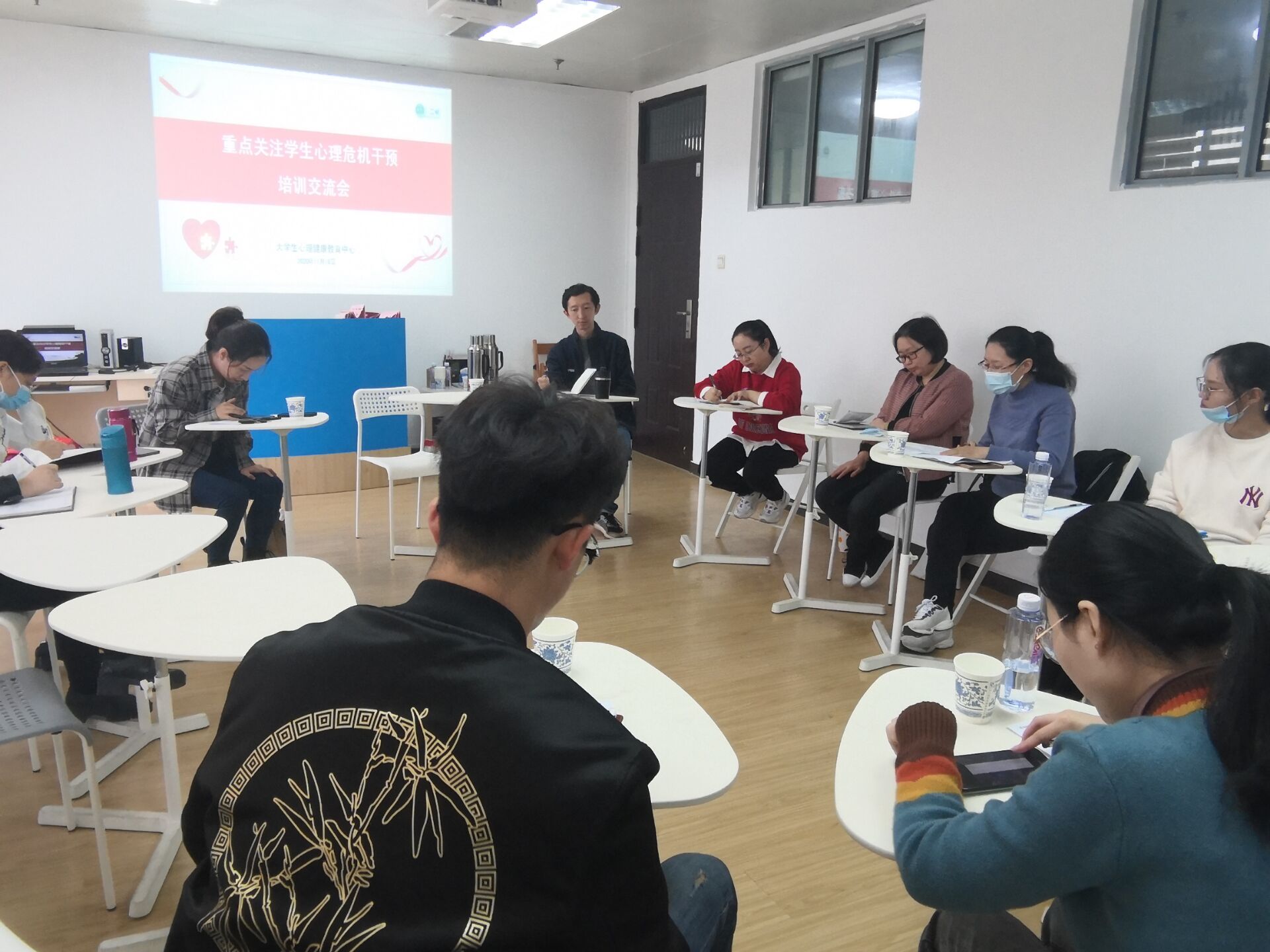 11月18日,大學生心理健康教育中心在大活423召開重點關注學生心理危機干預培訓交流會。前期參加“大學生危機干預線上工作坊”培訓的輔導員和心理中心4名專職教師參與了此次會議。