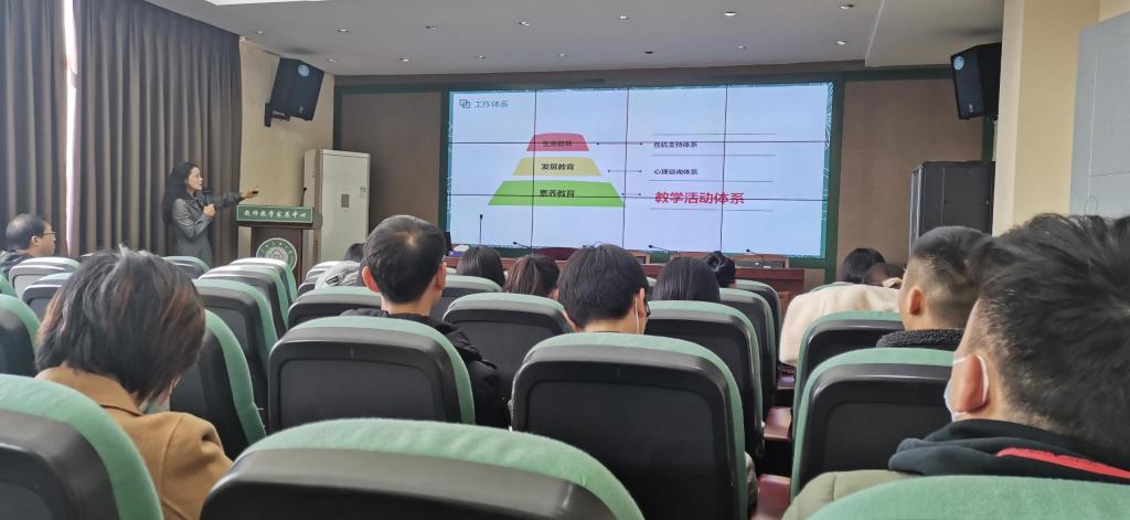 11月26日上午,“新手如何上好心理健康課”專題培訓(xùn)在教師教學(xué)發(fā)展中心741多功能廳舉辦。培訓(xùn)由黨委學(xué)生工作部大學(xué)生心理健康教育中心與教師教學(xué)發(fā)展中心聯(lián)合舉辦。中南財(cái)經(jīng)政法大學(xué)心理健康教育咨詢中心副教授、心理健康教育教研室主任何紅娟老師主講,我校黨委學(xué)工部副部長、大學(xué)生心理健康教育中心主任鄧俊熙和《大學(xué)生心理健康教育》教學(xué)團(tuán)隊(duì)全體教師參加了培訓(xùn)。