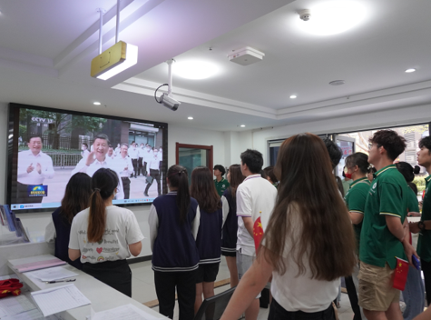 師生觀看總書記在智苑社區廣場同干部群眾親切交流的新聞聯播。 學生工作部 供圖