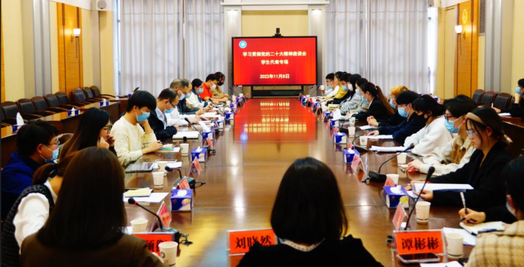 習近平總書記在黨的二十大報告中強調,廣大青年要堅定不移聽黨話、跟黨走,懷抱夢想又腳踏實地,敢想敢為又善作善成,立志做有理想、敢擔當、能吃苦、肯奮斗的新時代好青年,讓青春在全面建設社會主義現代化國家的火熱實踐中綻放絢麗之花。為掀起青年學子學習貫徹黨的二十大精神的熱潮,11月8日下午,學校在學術交流中心召開學生代表學習貫徹黨的二十大精神座談會。校黨委副書記、副校長宋發軍,黨委學生工作部主要負責人,全校本預科、碩士和博士研究生代表23人參加了會議。