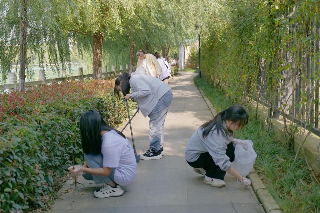 2023年10月21日下午兩點,一支由34人組成的組織有序的小隊出現在中南民族大學環湖路上,志愿者同學們自發攜帶了掃帚、垃圾袋、手套等清潔工具,大家分工明確,各司其職,團結協作,將看到的塑料垃圾、枯枝、落葉、衛生紙等垃圾進行清理。