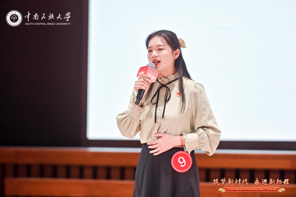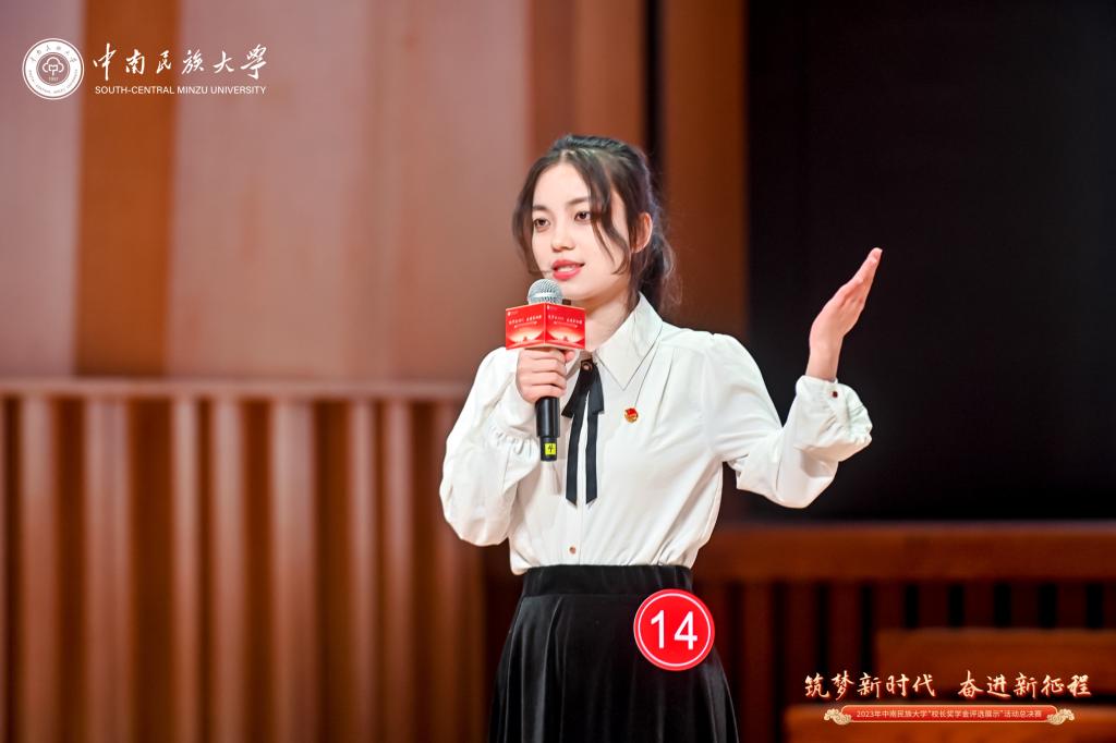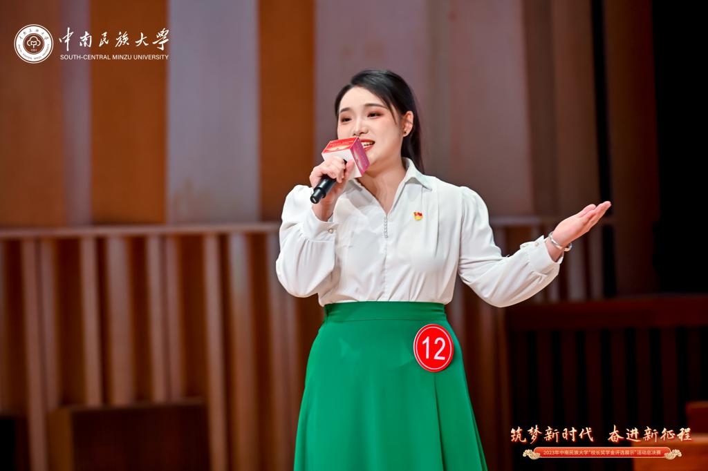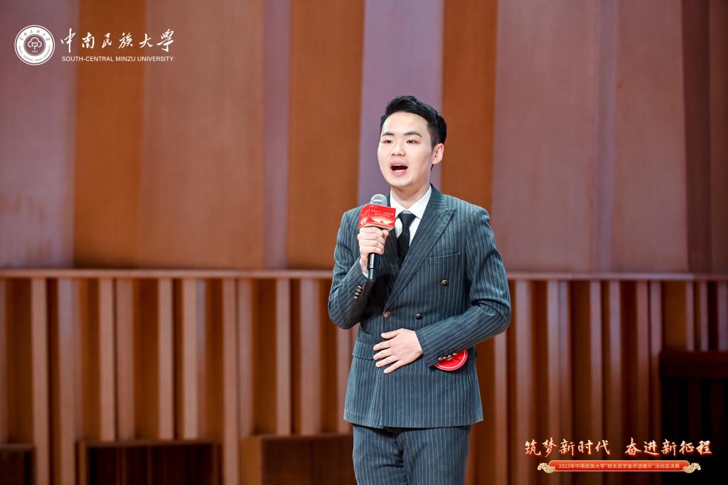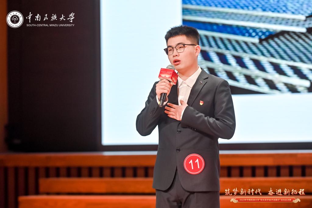 在展示環節中,現場時而掌聲雷動,時而熱淚盈眶。20位候選人圍繞申報類型,依次分享自己在學術科研、創新創業、文藝特長、社會實踐、自強不息等方面篤行不怠、奮力拼搏的感人故事和驕人成績。他們之中,有人腹有詩書、才華橫溢,有人博采眾長、全面發展,有人愛好廣泛、多才多藝,有人心懷家國、敢于創新……6分鐘的個人答辯,他們全方位展示了民大青年德才兼備、全面發展、奮力拼搏的昂揚之姿,努力成長為國之棟梁的成長歷程。