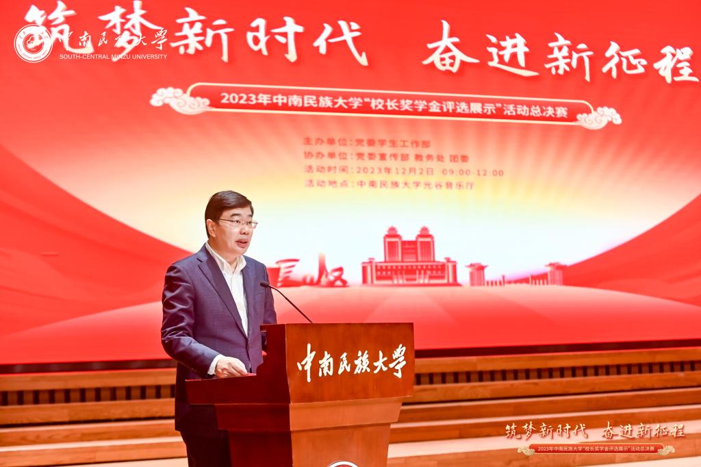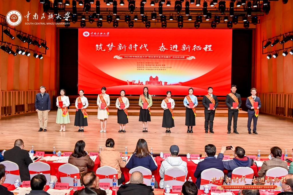 12月2日上午,中南民族大學2023年“校長獎學金評選展示”活動總決賽圓滿落幕。活動在我校光谷音樂廳舉行,校黨委書記邊境,校長李金林,校紀委書記韓葉盛出席,相關單位負責人、20位候選人及其親友團在現場參會,各單位主要負責人擔任評委。活動在線上同步直播。