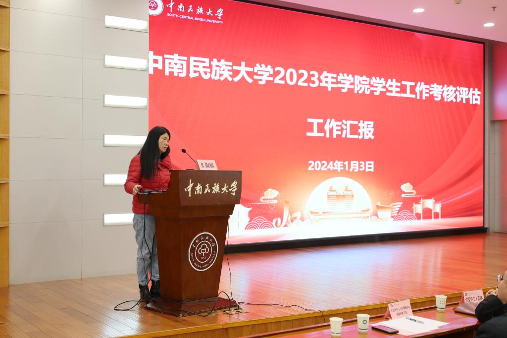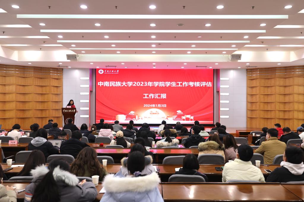 暑往寒來,春華秋實。為全面落實立德樹人根本任務,推進“三全育人”綜合改革,圍繞鑄牢中華民族共同體意識主線深入開展工作總結,推動學生工作開創新局面,1月3日,中南民族大學在學術交流中心國際廳召開2023年度學院學生工作考核評估會,校黨委常委、副校長李紅燕出席會議。黨委組織部、黨委宣傳部、黨委學生工作部(處)、校團委、黨委保衛部(保衛處)、教務處、招生就業工作處、研究生院、創新創業學院相關負責同志應邀擔任評委,各學院學生工作負責人、全體專兼職輔導員160余人參加會議。黨委學生工作部部長楊濤主持會議。