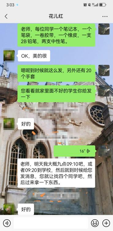 蘭元元與老師關于捐贈學習用品的聊天記錄。