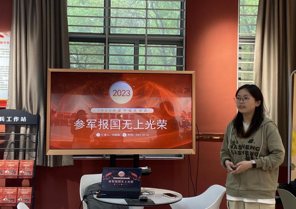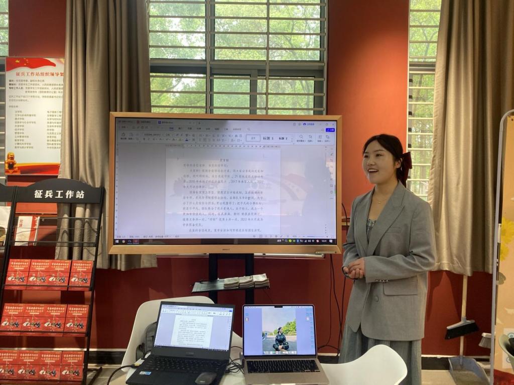 會上,劉甜甜老師就宣講團成立的背景、意義及相關規劃為同學們做了詳細講解,鼓勵同學們增強信心,在國防教育中擔當作為,在實踐鍛煉中提升素質。在試講環節,宣講團成員們以飽滿的熱情和專業的素養,分別就國防教育、征兵宣傳、自身入伍成長經歷等進行了深入淺出的講解與分享。大家運用生動的案例、豐富的數據和多樣的表達方式,結合實際,將國防知識以通俗易懂的方式呈現給聽眾。