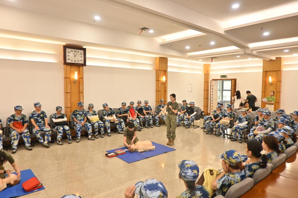 在軍訓現場醫療點,雙方校領導們對因傷因病不能參訓的同學表達了親切關懷,對其不懼炎熱,堅持列席學習隊列知識的頑強精神給予高度贊揚。